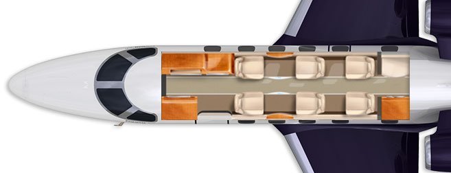 The Embraer Phenom 300 with 7 seats is capable of flying from Chicago to LAX or from Carlsbad California to Vancouver Canada, Here is the seating chart which you will receive with each quote from Fly Private Vegas.
